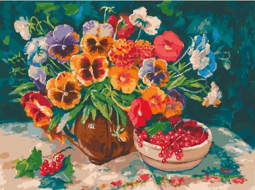 Живопись на холсте Букетик и смородина, 30x40, Белоснежка