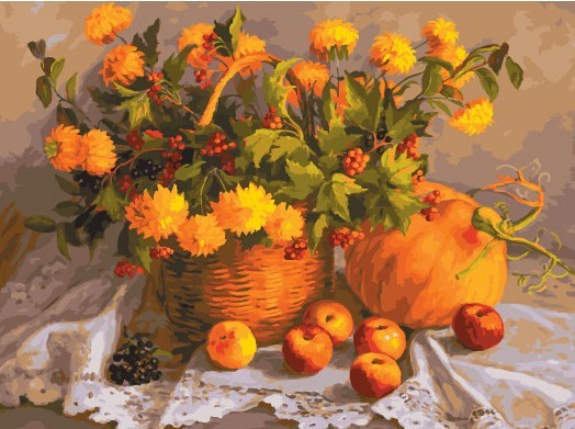 Живопись на картоне Подсолнухи и калина, 30x40, Белоснежка
